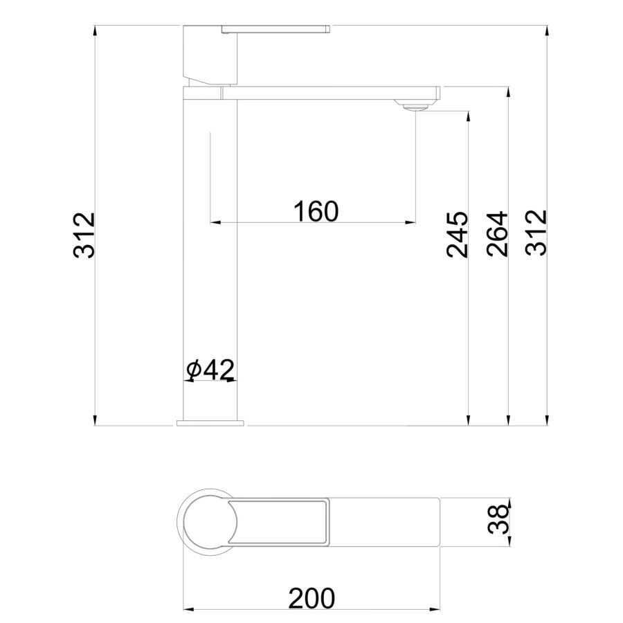 Evo magasított mosdó csaptelep matt fekete, beépíthető