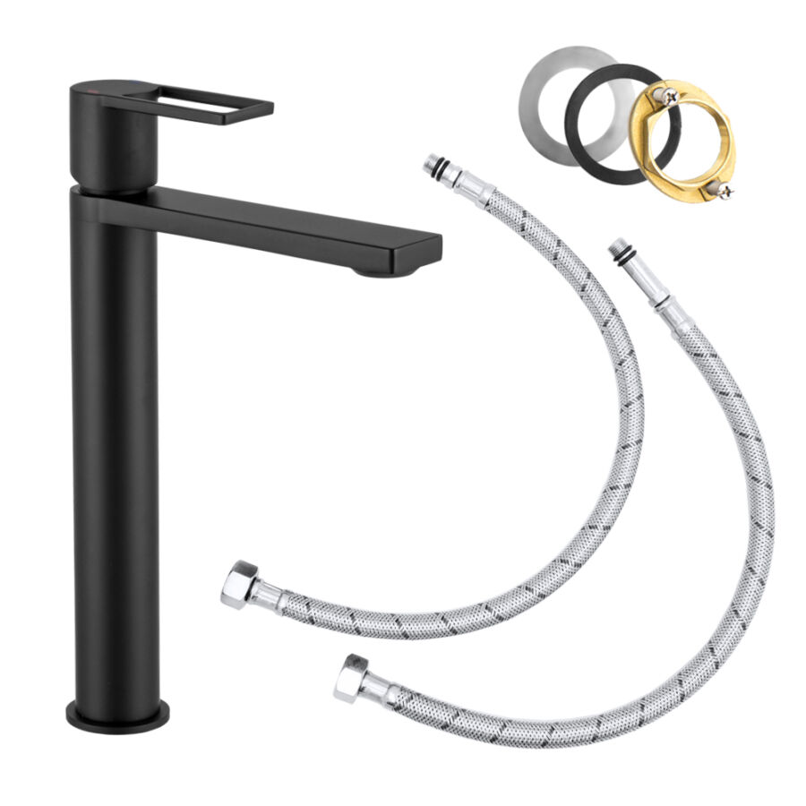 A csomag tartalma: csaptelep, bekötő csövek, tömítések, minden szerelvény, ami a bekötéshez szükséges