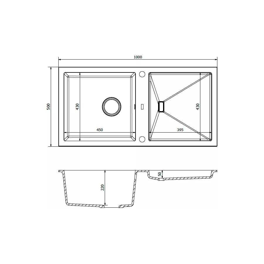 SLIDE 200 gránit mosogató automata dugóemelő, szifonnal, bézs, beépíthetőSLIDE 200 gránit mosogató automata dugóemelő, szifonnal, fekete, beépíthető