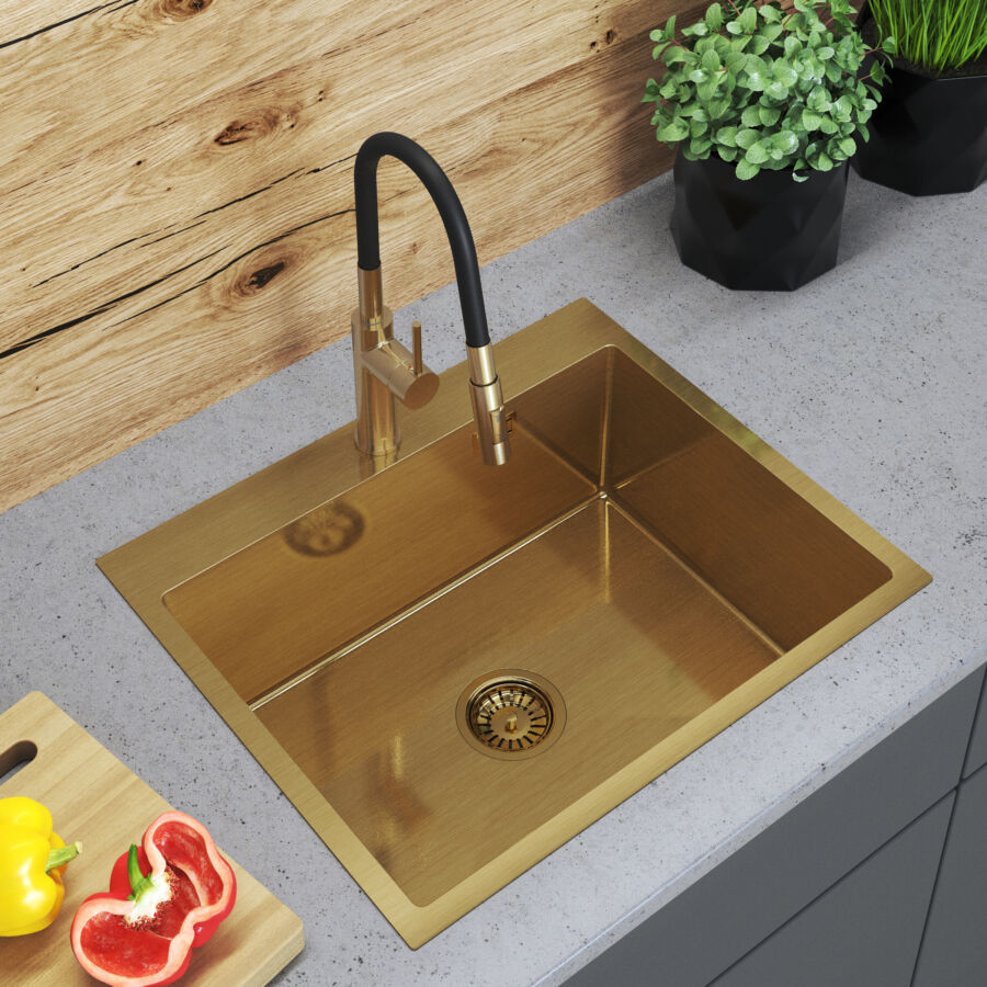 Stalowy S5444 egymedencés rozsdamentes acél mosogató, arany színben